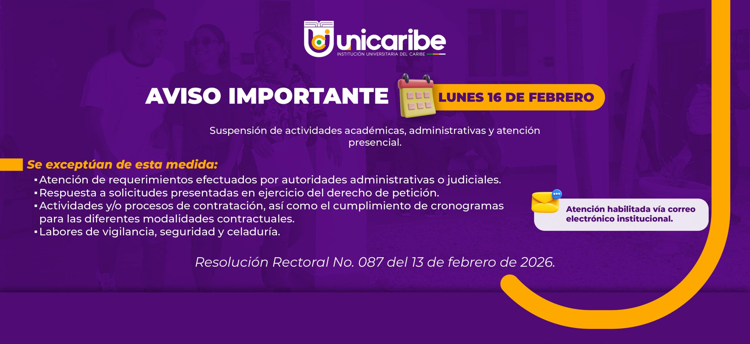 Suspensión de actividades académicas, administrativas y atención presencial.