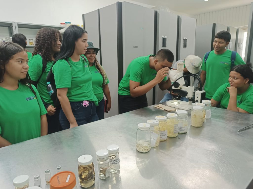 Posteriormente, la delegación de Infotep se dirigió al Centro de Colecciones Científicas de la Universidad del Magdalena. En este espacio, los jóvenes exploran la historia biológica y arqueológica de la región, conociendo colecciones húmedas y secas de diversos organismos, desde anfibios y algas marinas hasta una variada representación de insectos.