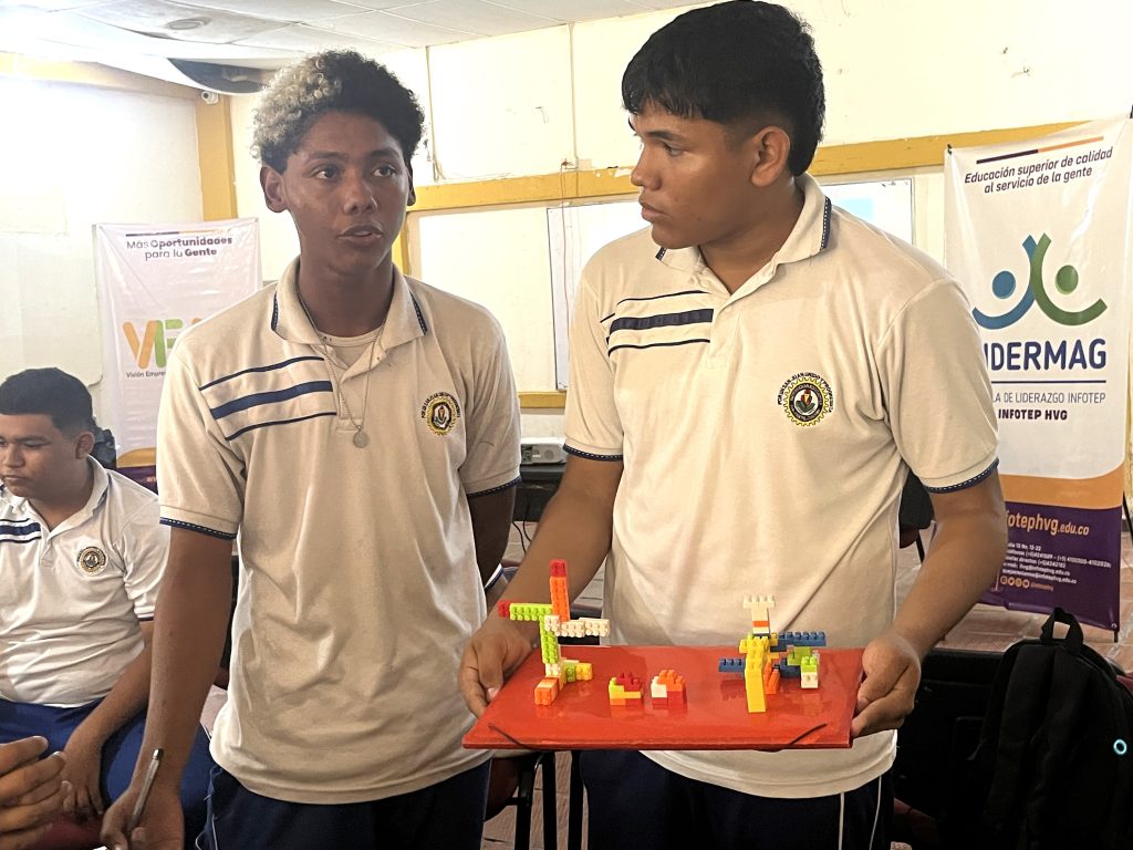 De igual manera, el docente Álvaro Gutiérrez, coordinador de la Unidad Visión Empresarial y Aceleración de Negocios (VEAN), desarrolló una dinámica sobre emprendimiento y liderazgo, implementando metodología interactiva con fichas de lego que le permitieron a los estudiantes resolver una problemática específica, fomentando el pensamiento crítico, el trabajo en equipo y la toma de decisiones estratégicas.