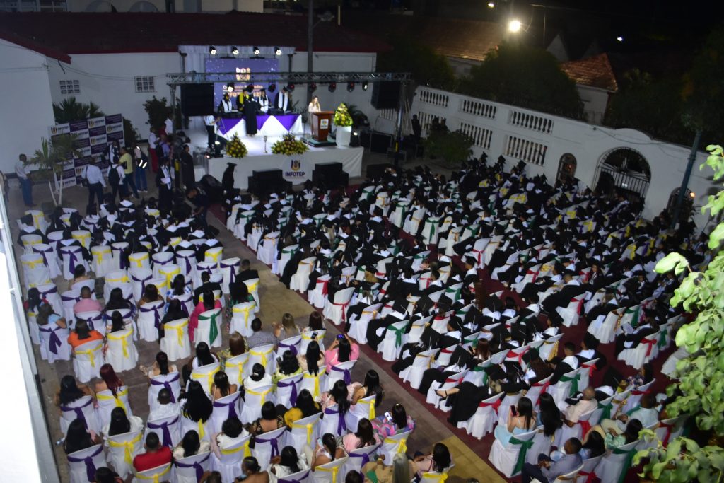 El Patio Tropical de la IES Infotep de Ciénaga fue escenario de las tres ceremonias de graduación que realizó esta Casa de estudios para entregar los diferentes títulos de Técnico Profesional a 686 jóvenes de la subregión norte del departamento del Magdalena.