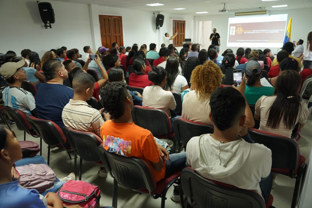 Estudiantes y docentes demostraron interés en las explicaciones de Moreno Angarita, lo que luego promovió la reflexión y el compromiso colectivo para la creación de ambientes laborales más seguros y saludables.
