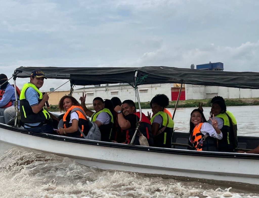 A bordo de una motonave y con mucha atención, estudiantes del programa de Administración Logística recorrieron un tramo del río Magdalena en la ciudad de Barranquilla para ver algunas actividades relacionadas con los conceptos aprendidos en la cátedra de Fundamentos y Operaciones Logísticas.